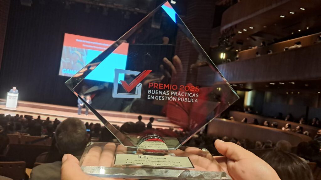 El galardón fue entregado en ceremonia realizada en instalaciones del Gran Teatro Nacional, dónde participo el gerente general regional en representación del GORE Tacna, así como funcionarios de la Gerencia Regional de Desarrollo e Inclusión Social y Gerencia de Desarrollo Económico.