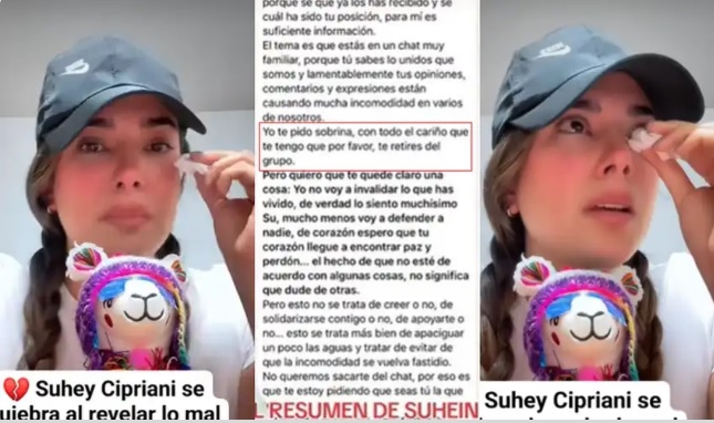 Suheyn Cipriani expone chat donde su tía le pide dejar el grupo familiar